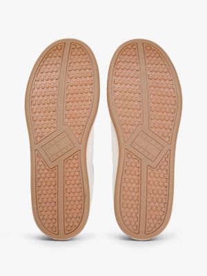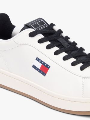 Inspirées de modèles des archives, ces baskets en cuir présentent une silhouette basse épurée et un badge Tommy.