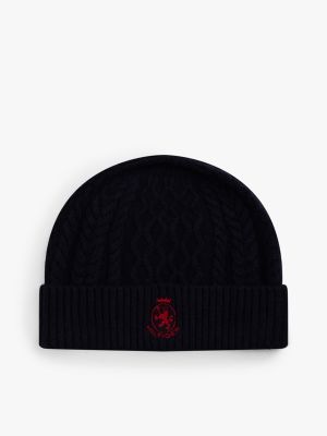 Bonnet en maille torsadée à écusson