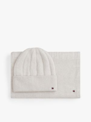 Faites plaisir à un proche avec ce coffret cadeau comprenant un bonnet et une écharpe duveteux. Ces pièces en laine mélangée extensible sont ornées de détails emblématiques.