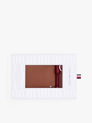 Cet élégant coffret cadeau contient un portefeuille à deux volets et un porte-clés assorti. En cuir lisse, ils adoptent un style intemporel.