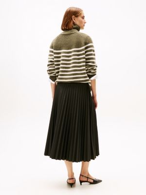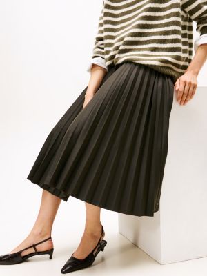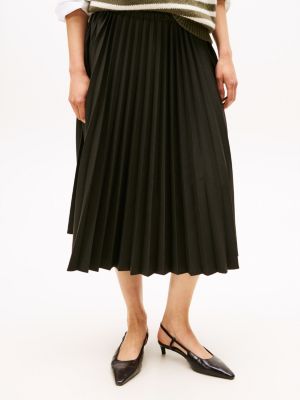 Cette jupe midi à enfiler en viscose mélangée extensible présente des plis qui créent un mouvement élégant.
