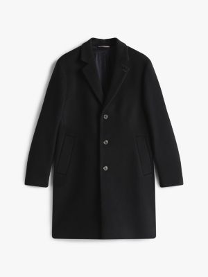 Ce manteau raffiné en laine mélangée présente des revers crantés et une épingle à plaque drapeau chic.