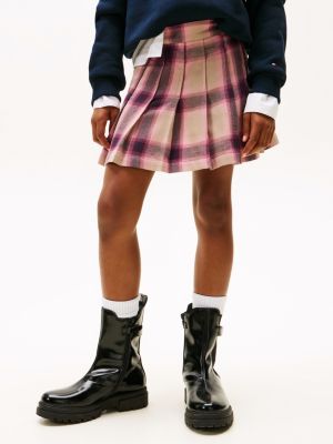 Cette minijupe en flanelle en fil tissé teint présente un motif à carreaux classique et des plis de façon à créer une tenue élégante.