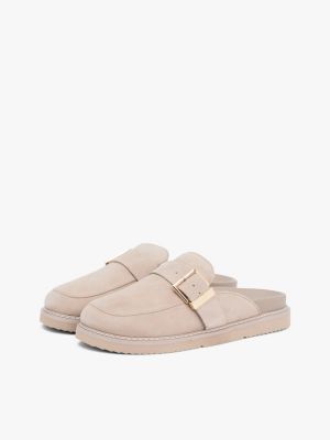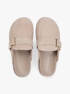Avec leur tige en daim texturé, leur doublure en polaire et leur boucle à monogramme TH, ces mules confortables constitueront un ajout luxueux à votre collection de chaussures.