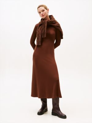 Robe mi-longue évasée côtelée
