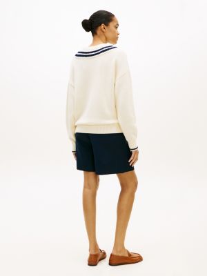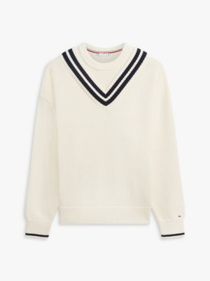 Adoptez le style preppy chic de ce pull décontracté. Il présente un col ras-du-cou à double épaisseur inspiré du cricket.