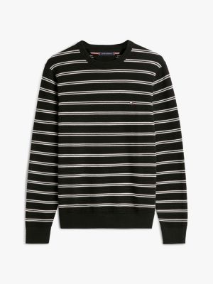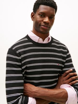 Ce pull se distingue par sa maille texturée. Le col ras-du-cou, les poignets et l'ourlet adoptent une finition côtelée classique.