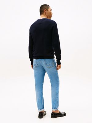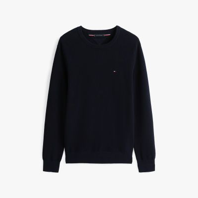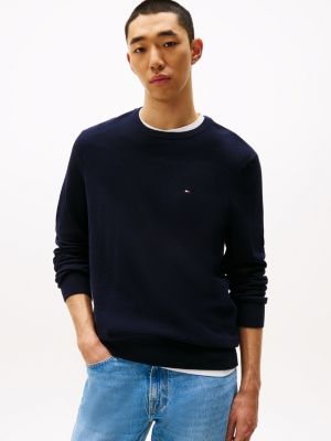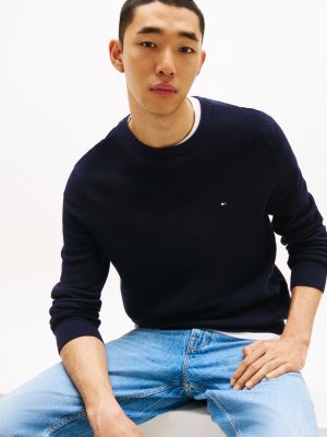 Ce pull en pur coton peigné tendance adopte un col ras-du-cou et un motif texturé.