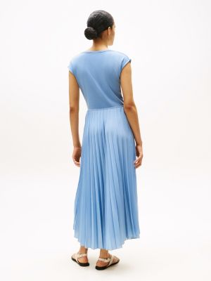 Cette robe flatteuse présente une silhouette moulante et évasée. Le corsage texturé côtelé à mancherons s'accompagne d'une jupe plissée longue pour créer un ensemble élégant.
