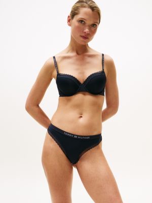 Les strings Tommy Hilfiger pour femme sont invisibles sous les vêtements. Un choix parfait sous nos jeans slim pour femme et nos robes polo tendance. Nos strings pour femme sont disponibles dans de nombreux modèles et styles, tous conçus dans des tissus stretch de qualité et ornés des détails caractéristiques de Tommy Hilfiger. Découvrez nos lots de strings en coton ou en microfibre extensible. Et si vous préférez une finition ultra-féminine, pensez à nos strings en dentelle. Ensoleillez votre journée avec les motifs audacieux et espiègles de nos strings taille haute aux motifs classiques d'étoiles et de rayures américaines ou à imprimé animal. N'oubliez pas nos strings sans coutures et nos strings durables, fabriqués avec des teintures naturelles, dans un mélange de coton et de modal extensible, confortables et respectueux de l'environnement. Portez-les sous nos shorts pour femme en denim durable pour un ensemble tendance et écologique, sans marques apparentes. Vous trouverez des brassières de sport pour femme Tommy Hilfiger assorties à chacun de nos strings pour femme.