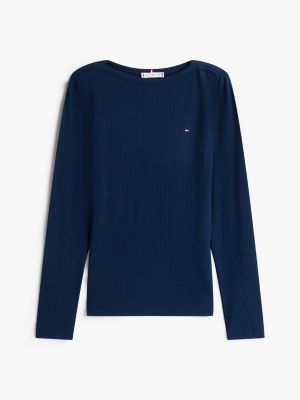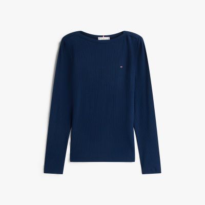 Ce T-shirt côtelé présente un col bateau flatteur et des manches longues. Il s'accordera facilement avec les pièces de votre garde-robe du quotidien.
