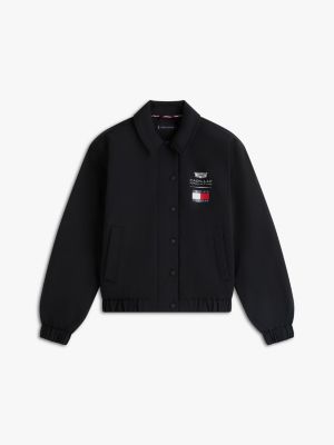 Soutenez l'équipe avec cette veste de coach à col, dotée d'un logo collaboratif à l'arrière et d'un détail co-branding sur la poitrine.