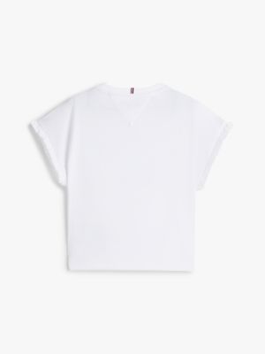 Geef je outfits een charmante touch in dit vintage-look jersey T-shirt met ruches aan de mouwen.