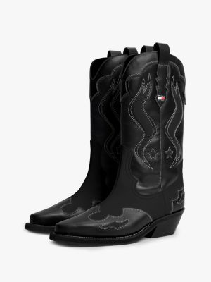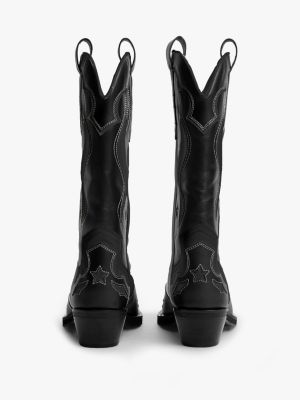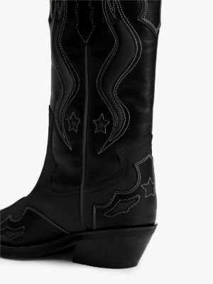 Deze leren cowboylaarzen zijn geïnspireerd door Western klassiekers en hebben contrasterende stiksels en een Cubaanse hak voor een authentieke uitstraling.