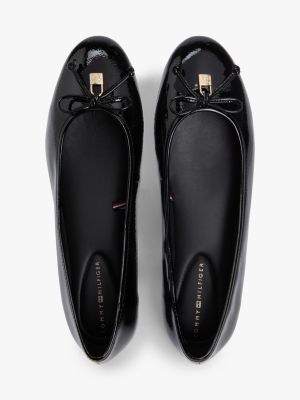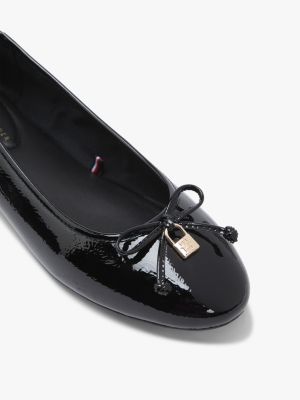Een partylook is pas compleet met deze ballerina's van glanzend lakleer met een strik en een hangslotje op de neus.