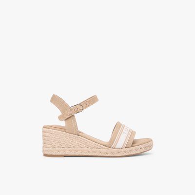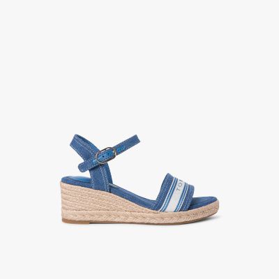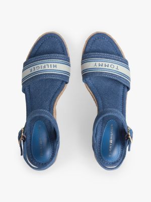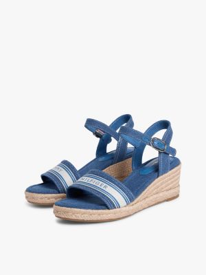 Deze espadrilles van denim canvas hebben een casual look, een praktische middelhoge sleehak en sportieve branded webbing bandjes.