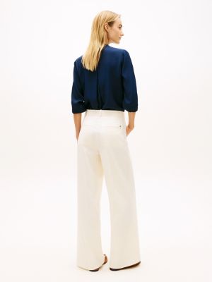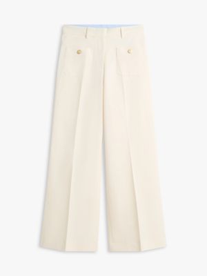 Deze wijde chino is gemaakt van een luxe geweven stof en versierd met goudkleurige knopen met emblemen in reliëf.