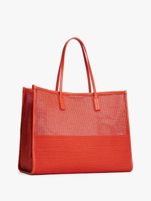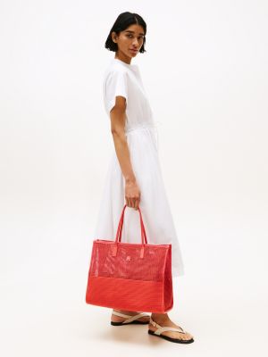 Maak je zomeroutfits af met deze ruime shopper met een geweven finish in vakantiestijl en een elegant metalen TH-monogram.
