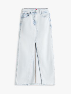 Ga voor een 90s look in deze rechte denim maxi-rok met een split aan de voorkant als edgy touch.