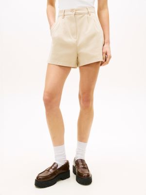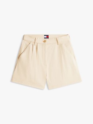 Deze short heeft een flatteuze hoge taille en plooien aan de voorkant voor een vrouwelijke take op klassieke denim stijlen.