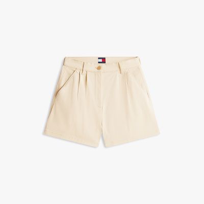 Deze short heeft een flatteuze hoge taille en plooien aan de voorkant voor een vrouwelijke take op klassieke denim stijlen.