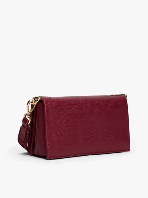 Deze elegante crossbodytas heeft een verfijnde gegranuleerde finish, een magnetische sluiting en een luxe metalen TH-monogram.