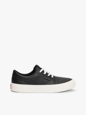 Deze sneakers geven de klassieke veterschoen een skatertwist met hun dikke rubberzolen en branded details.