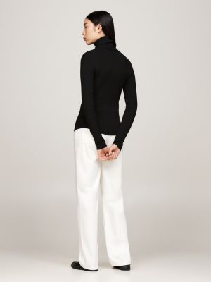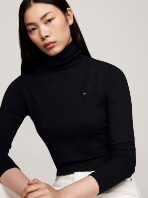 Deze elegante top met col is gemaakt van een flexibele ribstof die de aansluitende pasvorm benadrukt.