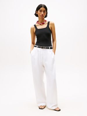 Deze slim fit tanktop met een vierkante hals, ribtextuur en delicate geschulpte randjes is een flatterend voorbeeld van modern minimalisme.