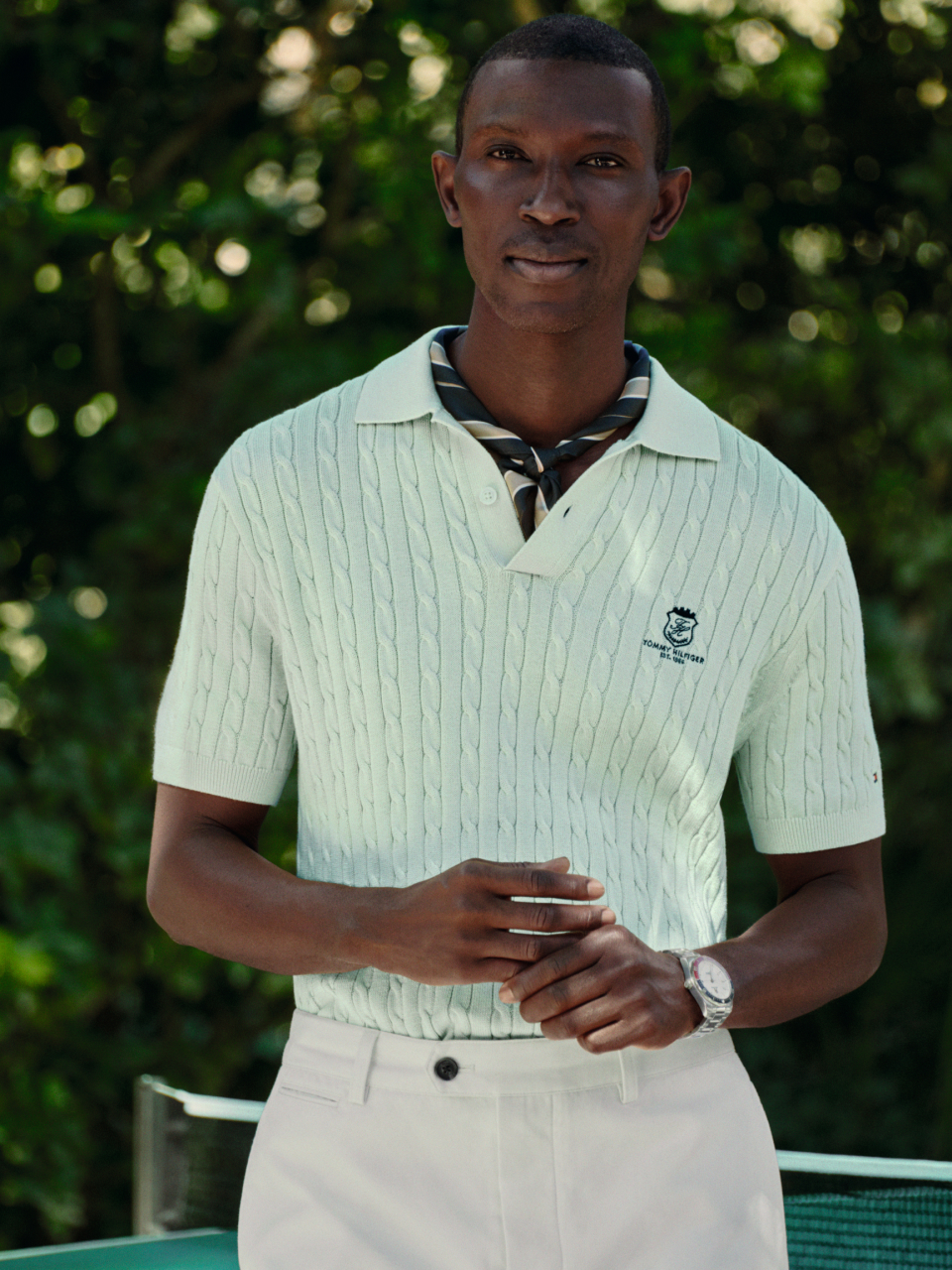 Regular fit kabelgebreid poloshirt met embleem