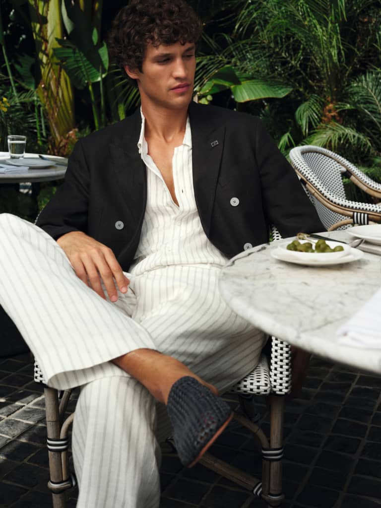 Regular fit canvas blazer met linnen