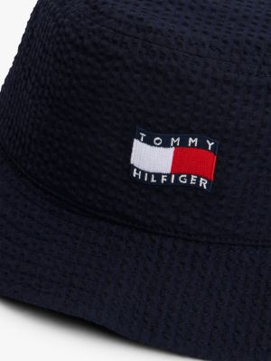 Deze bucket hat van katoenmix seersucker heeft een getextureerde look en een geborduurde wavy flag voor branded stijl.