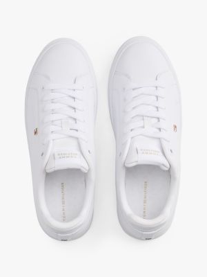 Deze court sneakers zijn gemaakt van nappaleer met een geëmailleerde vlag op de zijkant voor een signature-look.