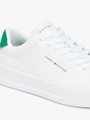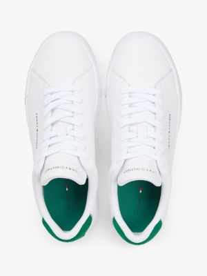 Ga voor een strakke look met deze gecoate leren court sneakers met een klassiek silhouet en een contrasterend vlak op de hiel.