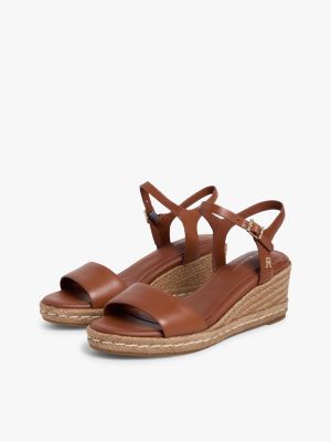 Leren espadrille met sleehak en TH-monogram