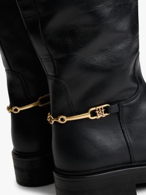 Deze overknee laarzen van glad en glanzend leer met een gepolijst, metalen horsebitdetail zijn een stylish eye-catcher.