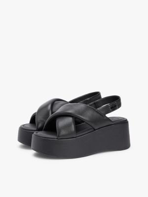 Leren sandaal met sleehak en bandjes