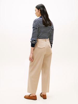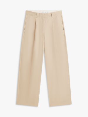 Deze chino met toelopende barrel-broekspijpen en plooien is een moderne toevoeging aan je garderobe.