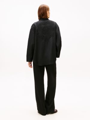 Dit oversized overhemd van luchtige linnenmix heeft een ton-sur-ton geborduurd bloemenmotief voor een elegante look.