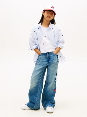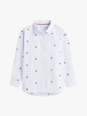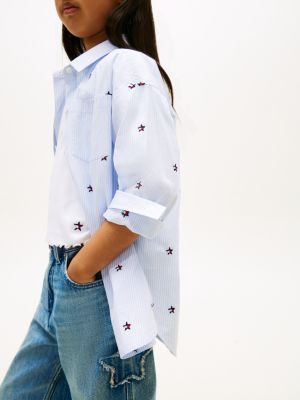 De geborduurde sterrenvlag op de gestreepte print geeft dit overhemd van puur katoen een unieke look.
