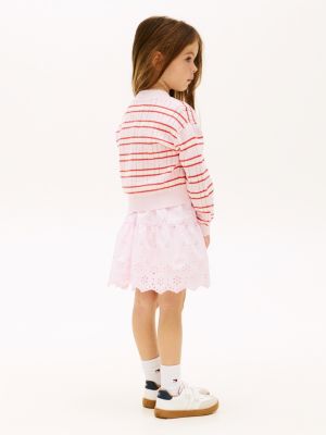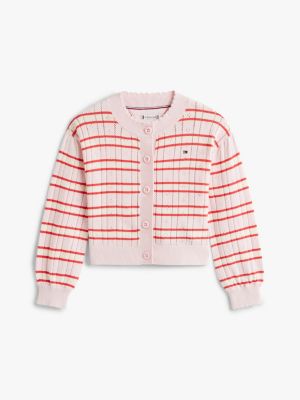 Dit vest van puur katoen met een gestreept design, een ajourmotief en geschulpte randen is een elegante extra laag.