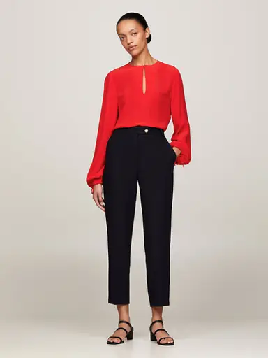 Natuurlijk zijn er ook nog altijd tijdloze chino designs te vinden in de Tommy Hilfiger-collectie, zoals flatterende zwarte slim fit chino's die je de hele dag door comfortabel kunt dragen. Dit eenvoudige maar elegante model is ook verkrijgbaar in een reeks felle, opvallende kleuren. Met twee paspelzakken aan de achterkant en merkdetails, waaronder geborduurde vlaglogo's op de achterzijde, zijn de klassieke twill chino’s van Tommy Hilfiger broeken waarop je vele seizoenen kunt vertrouwen. Geef je stijl een boost met de chino broek voor dames van Tommy Hilfiger, combineer hem met platte sandalen of leren hoge hakken met monogram, een fijne blouse of een eenvoudig slim-fit T-shirt zonder mouwen en geniet gewoon van de elegante snit en superieure pasvorm.