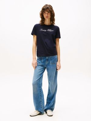 Dit easy-breezy T-shirt van ademend biologisch katoen geeft je dagelijkse looks een branded touch door het iconische scriptlogo.