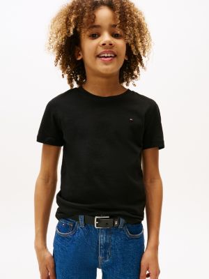 Ein T-Shirt gehört zu fast jedem Outfit und kann unter einem Hemd oder solo zur Jeans getragen werden. Dieses T-Shirt aus nachhaltiger und bequemer Bio-Baumwolle ist eine schicke Interpretation eines Alltags-Kleidungsstücks. Es hat einen Rundhalsausschnitt und auf der Brust eine dezente Tommy Hilfiger Flag.