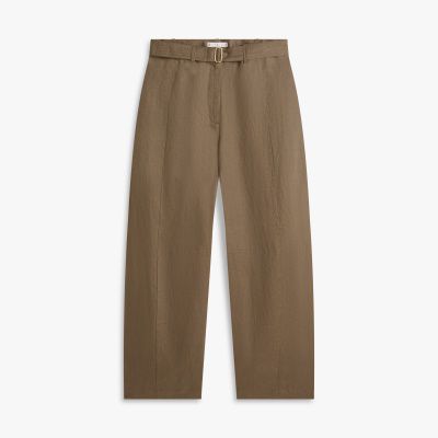 Deze broek van puur linnen twill heeft een modern design met een doorgestikte ceintuur in utility-stijl en een eye-catching barrel fit.