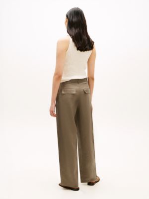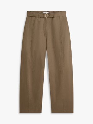 Deze broek van puur linnen twill heeft een modern design met een doorgestikte ceintuur in utility-stijl en een eye-catching barrel fit.