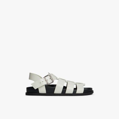 Ga voor een stoere en shiny look met deze chunky visserssandalen van lakleer met een gegoten voetbed en een elegant gegraveerde gespsluiting.