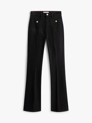 De goudkleurige knopen en de persvouwen geven deze nette bootcut jeans met een hoge taille een chique finish.
